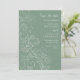 Este elegante casamento, exceto o cartão de data, apresenta um delicado design floral ornamental com flores, pássaros e folhas sobre fundo verde-sábio. O texto combina o script manuscrito e as fontes serif para uma aparência na moda e moderna. Perfeito para um casamento outono de inverno ou outono.