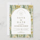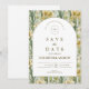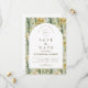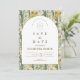 A sophisticated botanical design featuring rich green foliage and soft ivory blooms, framed within a timeless arched layout. The deep, nature-inspired tones bring a sense of depth and refinement, while the clean typography keeps the overall look elevated and effortless.
