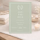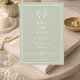 A sage green colored background, white frame. Personalize and add your monogram initials, names and the details.