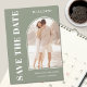 Este moderno cartão Save The Date apresenta um modelo de fotografia de na moda e uma tipografia contemporânea num fundo verde de sábio. Facilmente personalizável com sua foto e detalhes.