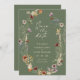Anuncie seu dia especial com o encantador encanto do nosso Sage Green Boho Wildflower. Apresentando flores silvestres pintadas à mão em matizes de terracota, ferrugem, roxo e azul contra um pano de fundo verde sereno, esta design captura o romance e a beleza natural de sua próxima celebração. Uma primeira impressão perfeita para os seus convidados, ela dá o tom para um casamento cheio de amor e elegância. Compartilhe a alegria de sua jornada e certifique-se de que seus hóspedes marquem seus calendários em estilo com este design cativante.