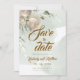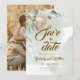 Modern stylish wedding save the date, with elegant watercolor floral sage greenery and dusty white garden roses, elegant modern hand drawn calligraphy. Classy and elegant, soft and modern invitation.