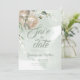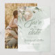 Modern stylish wedding save the date, with elegant watercolor floral sage greenery and dusty white garden roses, elegant modern hand drawn calligraphy. Classy and elegant, soft and modern invitation.