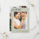 Verde clássico e moderno com script de pincel e pontos brancos duas fotos salvam a placa de data.
