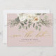 Design apresenta uma bela medalha de floral macio e verde mutado de coral, marfim, champanhe e sábio, emoldurada na folhagem botânica verde e empoeirada contra um fundo rosado empoeirado - tudo para as vossas cerimônias de casamento e eventos especiais. Há um toque de ouro nas "Salvar as Datas" feitas em um roteiro de caligrafia que, junto com o buquê suave, evoca um senso romântico de ser. Personalize facilmente com seus nomes e data de casamento. O cartão pode ser emparelhado com a suíte de casamento em nossa coleção intitulada: Folhagem Botânica Soft Floral.