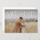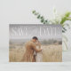 Esta nova e elegante imagem de sobreposição de escrita de caligrafia salva a data com um moderno pareamento tipográfico de escrita de caligrafia e uma serifa única. Sua foto de noivado tira o palco central nesta bela salva a data.