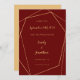 Um design elegante com uma estrutura geométrica de ouro e texto de ouro facilmente personalizado em fundo burguês com fundo de ouro coordenado na inversa. Personalize facilmente o texto e você pode alterar as cores do plano de fundo e do texto para corresponder ao tema do casamento, se desejar, por meio da opção Clique para personalizar mais. Se precisar de ajuda com esta design, por favor, me mande mensagem.