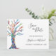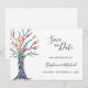 Este cartão exclusivo de salvamento da data do casamento é decorado com uma árvore mosaico colorida.