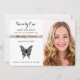 Borboleta simples, elegante e agradável, com ornamentos florais brancos e pretos em combinação com detalhes cintilantes, cor-de-rosa brilhante - rosa de ouro e fundos. Aniversário de 21 anos único, moderno, caprichoso, clássico, salve o convite da data, com foto personalizada da garota.