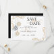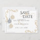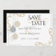 Casamento Salvar a Data | Balas de Natal Mínimas Douradas e Negras modernas - design original por ©WhimsicalArtwork™ - Três Enfeites de natal listrados a preto e dourado penduram em níveis variados - em conjunto com rolagem de canto dourado e uma combinação de caligrafia manuscrita escrita e uma fonte contemporânea fazem deste um conjunto único de convites para casamentos avant-garde - personalize facilmente com as suas informações - isto faz parte do Moderno Negro e Minimal Dourado ay Baubles Collection Uma combinação de caligrafia de script combinada com um layout de texto minimalista e contemporâneo faz dele uma suíte de casamento de estilo trending. Esta é parte de uma coleção de artigos de papelaria de casamento com acessórios de casamento correspondentes pela BarefootBride™.