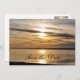 Fotografia do tamanho do cheio de um pôr do sol do ouro no oceano na frente e vista em miniatura no verso. Personalize com suas próprias informações.