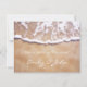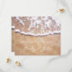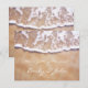 Este convite para salvar a data apresenta uma imagem de uma praia, com a água avançando sobre a areia.