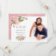 Cartões de salvar a data de casamento com pintura aquarela rosa cor-de-rosa e dourado com sálvia verde.