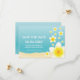 Este cartão de salvar a data floral é especialmente perfeito para casamentos na praia e em ilhas. O cartão apresenta as lindas flores de frangipani brancas ilustradas por Destei. A cor do fundo é azul com uma textura de areia na parte inferior. Personalize as áreas de texto com os detalhes do seu evento.