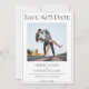Este Anúncio de Salvar a Data de Foto Moderna vem com um design de texto simples, um banner de fita elegante em uma caixa moderna delineada esperando pela sua foto e detalhes do casamento para personalizar. Cores adicionais disponíveis com este design.