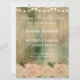 Um elegante convite para salvar a data do casamento rústico com fundo de madeira, rosas cor-de-rosa suaves e uma sequência de luzes. Este convite para salvar a data do casamento faz parte de um conjunto completo.