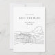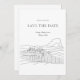 Simples design de casamento salve o cartão de data inspirado em colinas rolantes toscos e ciprestes