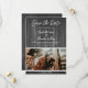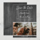 Crie um anúncio exclusivo com este Salvar a Data Foto Rústico Cinza. O anúncio apresenta um fundo de madeira rústica e um local para adicionar sua própria foto com um design de texto elegante. Cores adicionais disponíveis com este design.