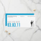 Um design contemporâneo e limpo é compensado por um tradicional casal de noivos preto e branco no topo do bolo. Perfeito para o casal moderno que aprecia o kitsch. A data do seu evento não será esquecida quando se destacar em azul brilhante. Fácil de personalizar com suas próprias informações. Adicione o url do seu site de casamento no verso. Disponível também com produtos correspondentes, bem como designs e cores alternativas.
