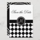Cartões de Salvar a Data com Padrão Arlequim e Monograma. Personalize com seu monograma na frente e todas as suas informações pessoais no verso do cartão usando os prompts de menu fáceis de usar da Zazzle.