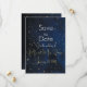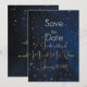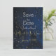 Estes save the dates de noite elegante são perfeitos para qualquer casamento de noite elegante. Belo tom azul escuro em todo o fundo com luzes luminosas e vagalumes brilhando nas folhas das árvores e ao fundo. Certifique-se de procurar nossos itens correspondentes vendidos aqui: https://www.zazzle.com/store/heritagematters/products?cg=196873255086485540