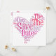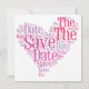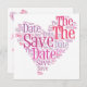 Salve o cartão de data em vários tons de cor-de-rosa, em forma de coração