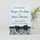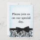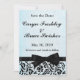Um elegante e formal salvará o anúncio da data da minha série Black e Blue. Um fundo azul em pó com fita preta e laço acompanhado de rendas pretas.
