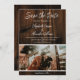 Crie um anúncio único com este Salvar Data de Foto Rústica. O anúncio apresenta um fundo de madeira rústica e um local para adicionar sua própria foto com um design de texto elegante. Cores adicionais disponíveis com este design.