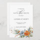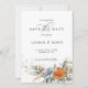 Este espantoso Salve a data apresenta um lindo motivo floral em tons de azul e laranja, criando uma perfeita harmonia de cores que impressionará seus convidados. Isso o torna uma excelente escolha para casais que querem adicionar um toque de cor para salvar a data e torná-la realmente única.