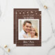 Parabéns no seu noivado! O próximo passo é deixar a família e os amigos saberem que você está noiva para se casar e quererem que eles salvem a data do seu casamento. Luzes brancas maravilhosas de cordas ou luzes de fadas com uma madeira rústica marrom parecem fundo. O destaque deste design é um dos seus retratos favoritos como casal.