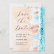 Cartão de salvar a data com pintura de praia em aquarela. Personalizável!