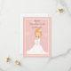 Guarde o cartão de um batismo de menina. O design é um bebê ilustrado em um fundo rosa com margaridas flutuando ao redor do bebê. Obrigados para Creative Fabrica e Hungryjpeg para alguns dos elementos do design.