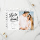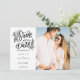 Este cartão moderno de salvar a data com escrita à mão apresenta sua foto especial e uma data de salvar à mão acima dos seus nomes, data e local. O verso apresenta um padrão de bolinhas que você pode personalizar para a sua cor favorita ou excluir e adicionar informações adicionais de celebração. Criado por Thisisnotme©
