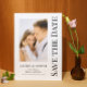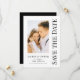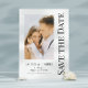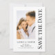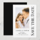 Salve A Data Preto Branco Cartões de Casamento Modernos com Letra Elegante apresenta um fundo branco com sua foto personalizada. Personalize com seu texto editando o texto nas caixas de texto fornecidas. Criado para você por ©Evco Studio www.zazzle.com/store/evcostudio