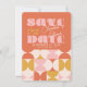 Convide seus entes queridos para o seu casamento com este cartão de salve a data retrô e animado, completo com um padrão de cor rosa e laranja quente dos anos 70, Tipografia retrô divertida, script estiloso personalizável e uma foto em arco. Adicione facilmente seus próprios detalhes clicando na opção "personalizar".