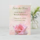 Elegante salve a data em que o anúncio do casamento apresenta uma simples rosa rosa-rosa maravilhosa sobre um fundo cor-de-água cor-de-rosa. Impressão duplo tem design de coordenação na parte de trás. Basta editar o texto e a data opcional no editor de texto fácil do Zazzle.
