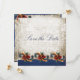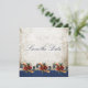 Elegante anúncio de Salve a Data Escandinavo em Fundo Sepia Floral com acento tradicional de Rosemaling de Telemark Norueguesa em tons de ouro, verde e vermelho no azul. Personalize este convite único e sofisticado digitando seus próprios detalhes personalizados no verso. Ótimo também para guardar em seu álbum de recordações!