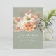 Anuncie seu casamento com este cartão elegante de save the date boho, apresentando um fundo verde salvia suave e flores de pêssego românticas em aquarela. Uma escolha atemporal para casamentos rústicos, de jardim ou final de verão.