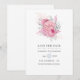 Convite de casamento com rosas rosa, prata e branco simplista para salvar a data personalizável para os detalhes do seu evento.
