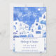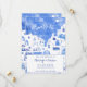 Uma pintura aquosa moderna da cidade pitoresca de Oia, na ilha grega de Santorini, para celebrar seu amor com um toque de elegância e beleza. Inspirados pelas impressionantes vistas da ilha, esses convites apresentam uma pintura aquosa mesmerizante de Oia em tons azuis e brancos sonhosos. Perfeito para um casamento de destino, estes convites vão dar o tom para o seu dia especial e garantir que os seus hóspedes estão a contar os dias para a sua comemoração inesquecível na Grécia. Arte original de Nic Squirrell.
