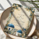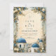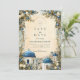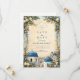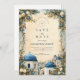 Inspired by the iconic white architecture and blue domes of Santorini, this elegant wedding design features hand-painted Mediterranean florals and soft botanical accents. The airy composition, muted coastal blues, and refined greenery create a timeless destination wedding aesthetic that feels romantic, elevated, and effortlessly European. Perfect for couples planning a Greek island, coastal, or Mediterranean-inspired celebration with a classic yet artistic touch.