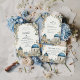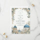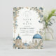 Inspired by the iconic white architecture and blue domes of Santorini, this elegant wedding design features hand-painted Mediterranean florals and soft botanical accents. The airy composition, muted coastal blues, and refined greenery create a timeless destination wedding aesthetic that feels romantic, elevated, and effortlessly European. Perfect for couples planning a Greek island, coastal, or Mediterranean-inspired celebration with a classic yet artistic touch.