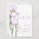Save the Date Card for a Modern Wedding. Delicate irises in soft lilac shades are depicted against a pastel background, creating an atmosphere of sophistication and tranquility. The design is modern, airy, and perfect for a stylish, romantic wedding.