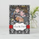 Reserve A Data Save the Date com Fita Damask Preto/Branco/Vermelh