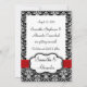 Fundo damask preto e branco com design elegante, fita vermelha e moldura branca. Convite de casamento e conjunto de acessórios combinando. Todos os Designs Copyright © 2012 www.CustomInvitesOnline.com