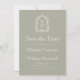 Este elegante casamento inspirado na vintage Save the Date design apresenta um par de iniciais de monograma branco em letra serif aberta acima e abaixo de uma linha divisória e rodeado por uma crista de acanthus de uma linha em um fundo verde-sábio. A parte traseira da placa é verde estável.