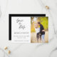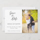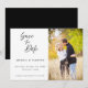 Um clássico anúncio de casamento com foto de script manuscrito. Este cartão de save the date apresenta um texto elegante em script com um tema simples em preto e branco. Personalize o texto com todos os detalhes do seu dia especial.