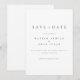 Convite de "save the date" de casamento simples e elegante em um estilo de design minimalista moderno que apresenta o nome da noiva e do noivo emparelhado com uma redação tradicional em uma tipografia elegante em preto e branco clássico. Personalize com seu nome, monograma, inicial ou texto. Você pode alterar a cor do texto e o estilo da fonte usando a opção personalizar ainda mais.