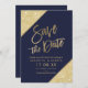 Dourada tipografia no marinho personalizável bloco colorido azul de ouro, e fitas geométricas de ouro falsas salvam o casamento da data, perfeito para o casamento elegante e na moda,