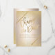 Tipografia Dourada amarela Chic sobre folha metálica dourada glitter ombre e listras geométricas douradas falso mudam a data casamento, para anunciar o adiamento do seu casamento e novos planos